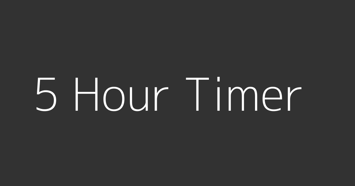 This free online 5 hour timer is a simple countdown clock with an alarm. It works in your browser with no download or sign-up. Use it as a 5 hour countdown for cooking, workouts, study sessions, or any task that needs a time limit.